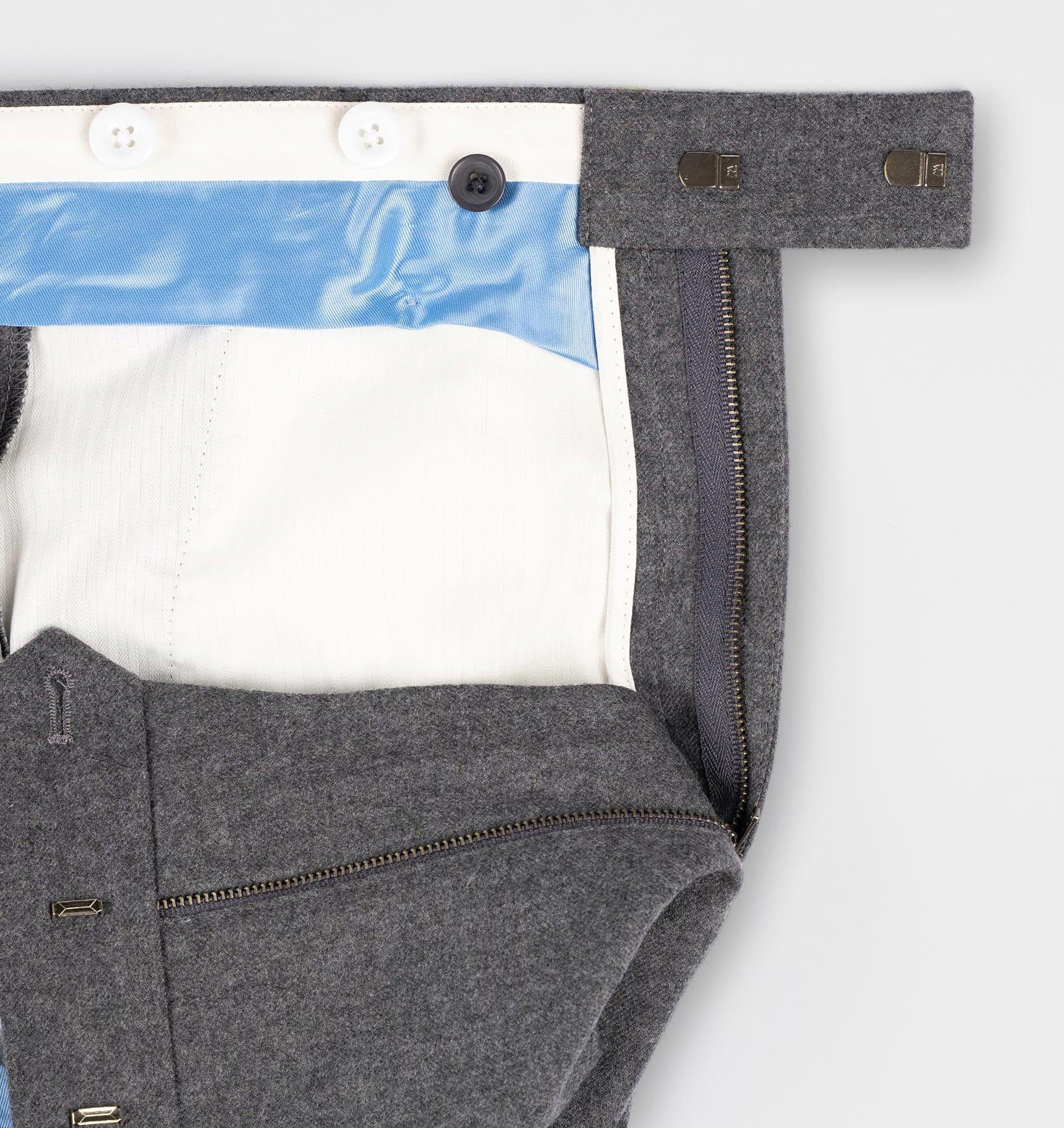 Crafted from premium English flannel sourced from Huddersfield Fine Worsteds, a British cloth merchant renowned for supplying the world’s foremost tailors with superior woollen fabrics.