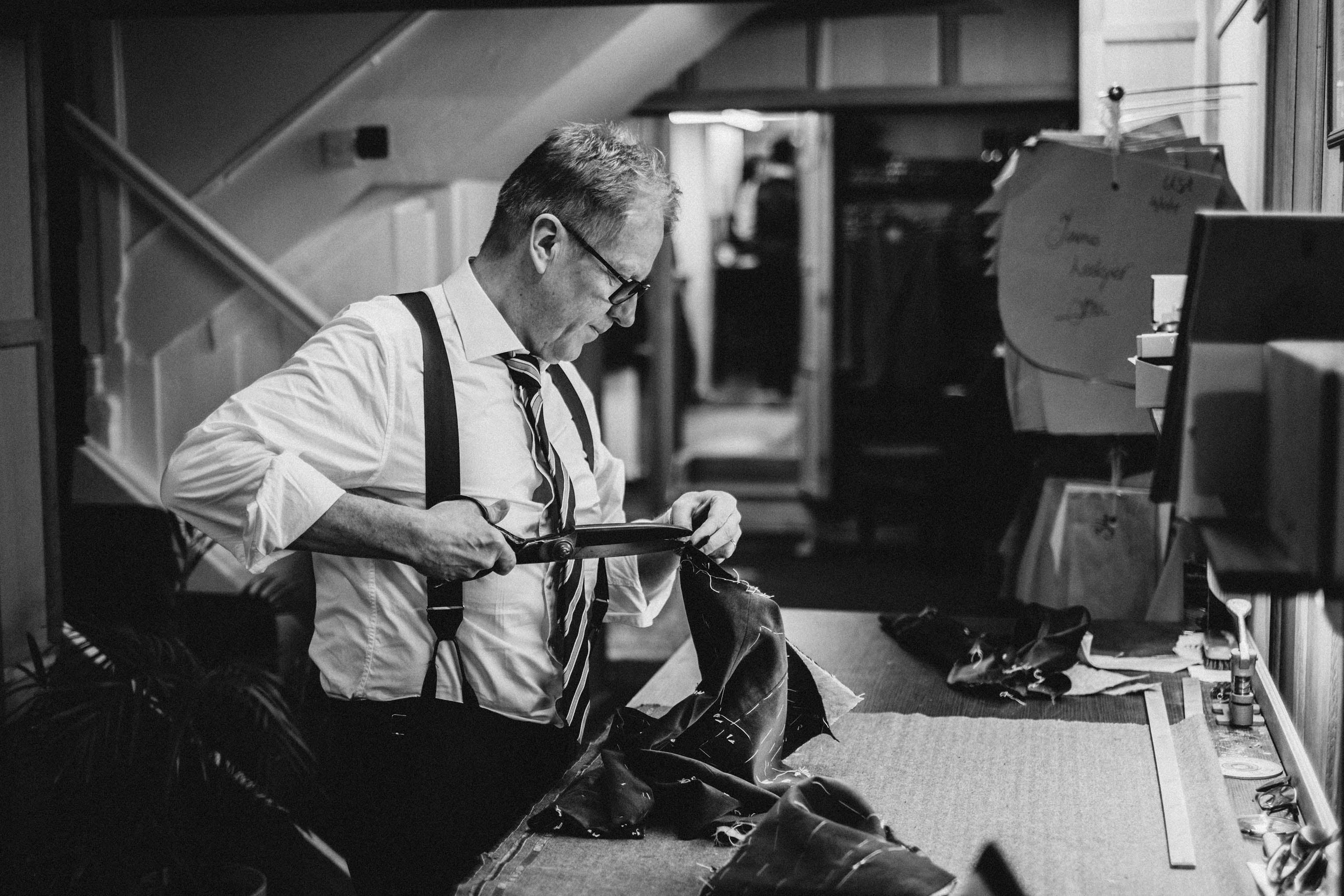 We arrange with you one or two fittings at different stages of the make to ensure your garment fits perfectly. After that, we'll add the final touches like hand sewn edges and buttonholes, and the final pressing. While your complete satisfaction is important, our commitment to it doesn't stop there. When you've had the chance to really enjoy your bespoke suit we get in touch to check how your suit is settling in, as like your favourite pair of leather shoes the more you wear it the better it come to shape and fit you.